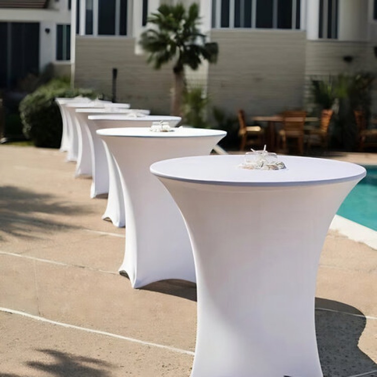 White Cocktail CoversCocktail Bistro Tables:White Cocktail Covers1Dropdown03127333_31273371000 Fitted white spandex table covers for our cocktail bistro tables.
