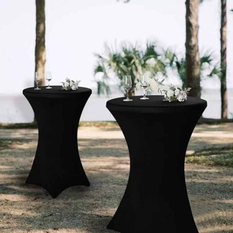 Black Cocktail CoversCocktail Bistro Tables:Black Cocktail Covers1Dropdown03127333_31273351000 Fitted black spandex table covers for our cocktail bistro tables.